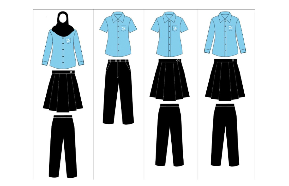 ޔުނިފޯމަށް ގެންނަން ނިންމާފައިވާ ބަދަލުގައި، ރަސްމީ ޔުނިފޯމުގެ މަތީބައި ނުވަތަ ގަމީސް ހުންނަން ޖެހޭނީ ހުދު، ސްކައި ބްލޫ، ޓީލް ގްރީން ނުވަތަ ލައިޓް ރެޑް ކުލައިގަ އެވެ. ރަސްމީ ޔުނީފޯމުގެ ފަޓުލޫނު/ސްކާޓް/ސޯޓު ހުންނަން ޖެހޭނީ ކަޅު ނުވަތަ ނޭވީ ބްލޫ ކުލައިން ކަމަށް އުސޫލްގައިވެ އެވެ.