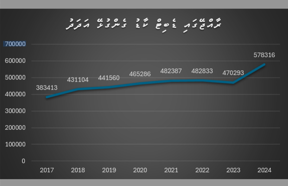 ރާއްޖޭގައި ބޭނުންކުރާ މޮބައިލް ވޮލެޓްގެ ޖުމްލަ އަދަދު (މޯލްޑިވްސް މަނިޓަރީ އޮތޯރިޓީ)
