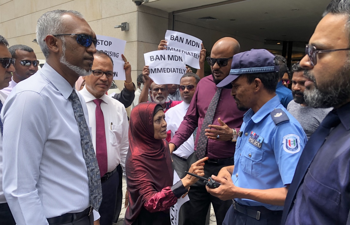އިސްލާމްދީނަށާއި ރަސޫލާ އަށް ފުރަައްސާރަކޮށް، ރިޕޯޓު ނެރުނު މޯލްޑިވިއަން ޑިމޮކްރަސީ ނެޓްވޯކް (އެމްޑީއެން) ގެ މައްސަލައިގައި އިދިކޮޅު ފަރާތްތަކުން ޔޫތު މިނިސްޓްރީ އަށް ސިޓީއެއް ހުށަހެޅުމަށް ފަހު، ވެލާނާގޭ ބިލްޑިންގް ކައިރީގައި ނިއުސް ކޮންފަރެންސެއް ދޭން އުޅުމުން ފުލުހުން މިއަދު އެކަމަށް ހުރަސް އަޅައިފި އެވެ.